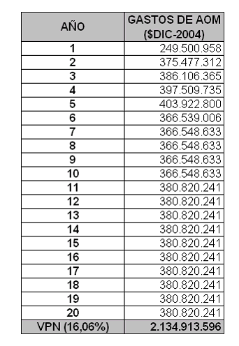 | Valor Presente de los gastos de AOM, con nivel de eficiencia | $2,134,913,596 |