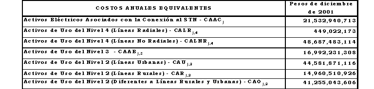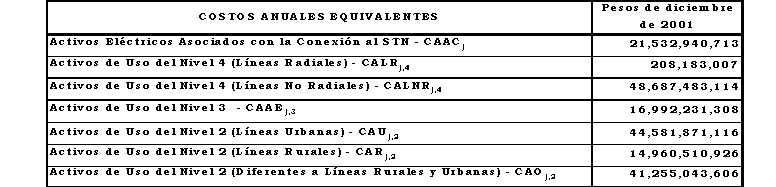 a) Costo anual para remunerar los activos de conexión al STN y de los Niveles de Tensión 4, 3 y 2, sin aplicar los criterios de eficiencia de que trata el Anexo No 8 de la Resolución CREG 082 de 2002: