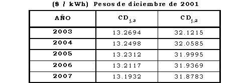 - Cargo de transición para el primer mes de aplicación del Cargo Máximo de Nivel de Tensión 2 aprobado en esta Resolución: 19.5200 $/kWh (pesos de diciembre de 2001).
