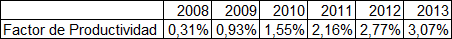 En la siguiente tabla se presenta el factor de productividad promedio en el que se disminuye el GOP para cada uno de los años del periodo tarifario: