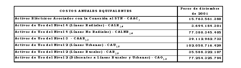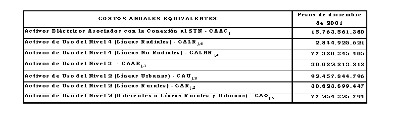 a) Costo anual para remunerar los activos de conexión al STN y de los Niveles de Tensión 4, 3 y 2, sin aplicar los criterios de eficiencia de que trata el Anexo No 8 de la Resolución CREG 082 de 2002: