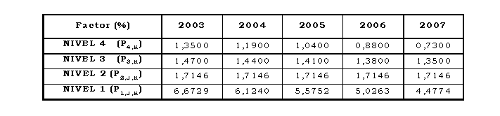 Parágrafo. Los factores de que trata el presente Artículo se aplicarán de acuerdo con la siguiente expresión: