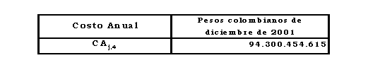 Artículo 1. Costo Anual por el uso de los activos del Nivel de Tensión 4. El Costo Anual por el uso de los activos del Nivel de Tensión 4 operados por CODENSA S.A. E.S.P. será el siguiente: