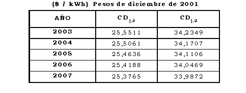 - Cargo de transición para el primer mes de aplicación del Cargo Máximo de Nivel de Tensión 2 aprobado en esta Resolución: 29.7588 $/kWh (pesos de diciembre de 2001).