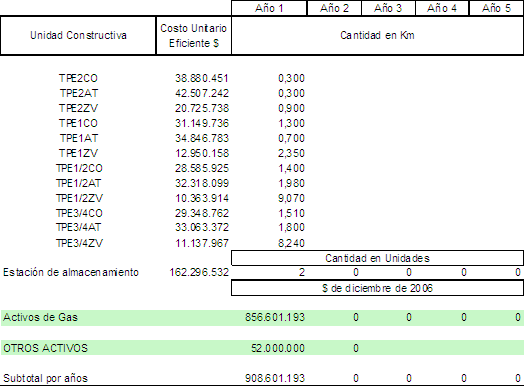 Que la solicitud tarifaria presentada por Surcolombiana de Gas S.A. ESP. incluye las proyecciones de demanda, las proyecciones de gastos de AOM de distribución y el Programa de Nuevas Inversiones, clasificadas según el listado de unidades constructivas establecido en el Anexo No. 1 de la Resolución CREG 011 de 2003;