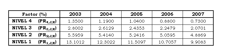 Parágrafo. Los factores de que trata el presente artículo, se aplicarán de acuerdo con la siguiente expresión: