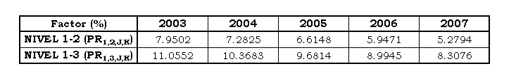 b) Factores para referir las medidas en el nivel de tensión 1 a los Niveles de Tensión 2 y 3: