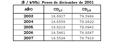 - Cargo de transición para el primer mes de aplicación del Cargo Máximo de Nivel de Tensión 2 aprobado en esta Resolución: 46.9485 $/kWh (pesos de diciembre de 2001).