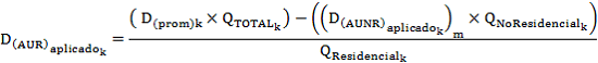 | Valor obtenido de la suma de: i) demanda anual reportada en la solicitud tarifaria correspondiente a usuarios del uso residencial para mercados existentes del submercado de distribución k y ii) valor anual equivalente del valor presente de la proyección de demanda de usuarios de uso residencial de los municipios nuevos del submercado de distribución k. Demanda obtenida a diciembre de 2014 y expresada en metros cúbicos (m3). |