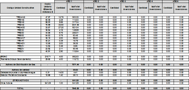 La Empresa, mediante la comunicación en cita reportó a la CREG las proyecciones de demanda, las proyecciones de gastos de AOM de distribución y el programa de nuevas inversiones, clasificadas según el listado de unidades constructivas establecido en el Anexo No. 1 de la Resolución CREG 011 de 2003.