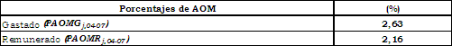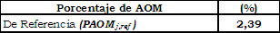 Artículo 4. Porcentaje de AOM de referencia. El Porcentaje de AOM de referencia para el OR CODENSA S.A E.S.P., calculado en la forma establecida en la Resolución CREG-097 de 2008, es igual a: