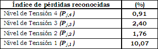 Artículo 6. Pérdidas reconocidas. Las pérdidas reconocidas para cada nivel de tensión del sistema operado por el OR CODENSA S.A E.S.P., calculadas en la forma establecida en la Resolución CREG-097 de 2008, son:
