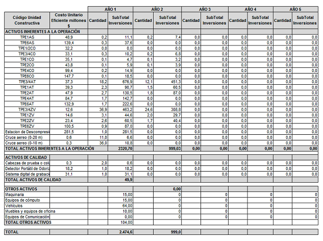 La Empresa, mediante la comunicación en cita reportó a la CREG las proyecciones de demanda, las proyecciones de gastos de AOM de distribución y el programa de nuevas inversiones, clasificadas según el listado de unidades constructivas establecido en el Anexo No. 1 de la Resolución CREG 011 de 2003.