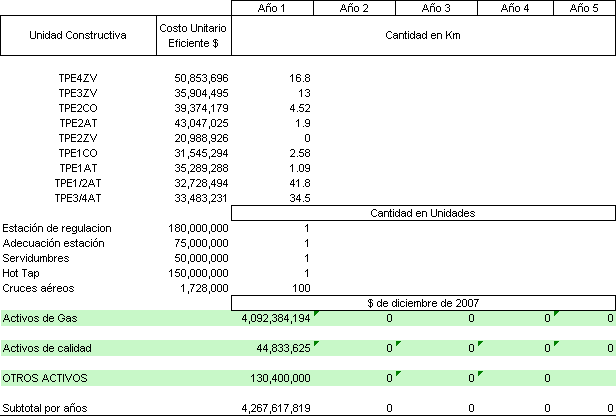 La Comisión de Regulación de Energía y Gas efectuó los cálculos tarifarios correspondientes a partir de la metodología establecida en la Resolución CREG-011 de 2003 y demás información disponible en la Comisión, los cuales se presentan en el Documento CREG-063 de 2010.