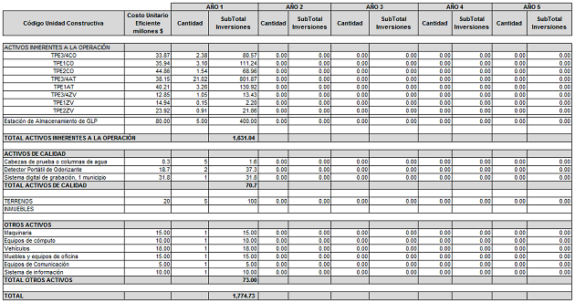 2.1. Inversión Existente. Como inversión existente no se reconoce monto alguno, por tratarse de un mercado nuevo, de conformidad con la información presentada por la Empresa.