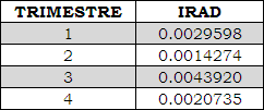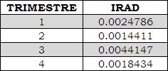 La aplicación de la fórmula con base en el resultado arrojado por la CREG en el cálculo del IRADKn,p,k en todos los trimestres, tiene un efecto directo sobre la variable IRADn,p de los niveles de tensión 2 y 3, en tanto que se traduce en un valor menor de este índice para todos los trimestres.
