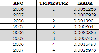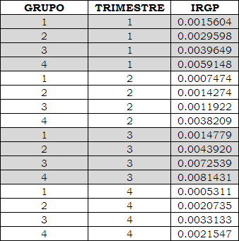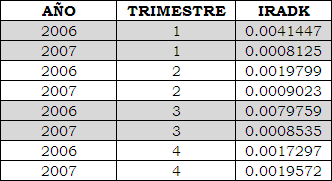 De la revisión de esta información se encuentra que para ningún trimestre de los dos años de referencia, 2006 y 2007, existen datos respecto del grupo de calidad 2 y que para el año 2007 no existe información en ningún trimestre en el grupo de calidad 4.