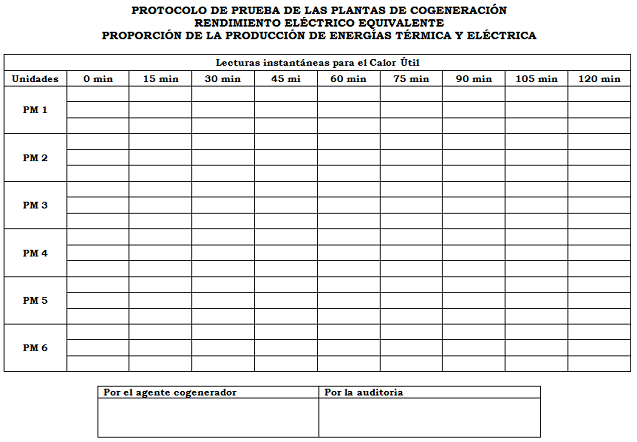 Durante la prueba se tomarán lecturas acumuladas, que serán la base de los cálculos de Energía Primaria, Calor Útil y la energía de cogeneración y lecturas instantáneas que servirán primordialmente para verificar que las condiciones de operación de la unidad permanezcan estables durante la prueba.