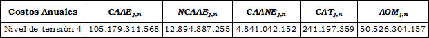Teniendo en cuenta lo expuesto, para el nivel de tensión 4 se obtienen las siguientes variables, expresadas en pesos de diciembre de 2007: