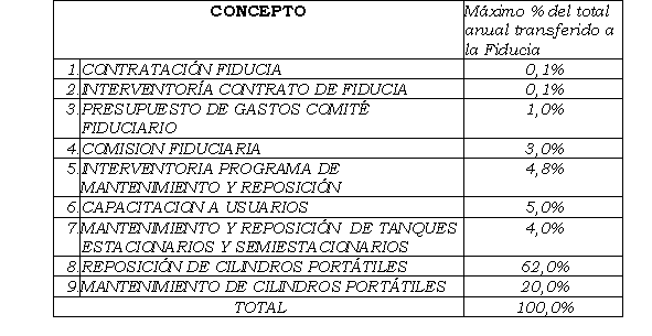 “Margen de seguridad. Por razones de seguridad dentro del precio de venta del GLP la Comisión de Regulación de Energía y Gas (CREG) incluirá un rubro denominado “Margen de Seguridad”, con destino exclusivo al mantenimiento y reposición de cilindros y tanques estacionarios utilizados en la comercialización del GLP. El recaudo y administración de dicho rubro será reglamentado por la Comisión de Regulación de Energía y gas dentro de los seis (6) meses siguientes a la expedición de la presente ley y será reajustado anualmente de acuerdo al IPC. En cualquier caso, la CREG deberá otorgar anualmente participación a los distribuidores de GLP en la reglamentación que se expida. En dicha reglamentación se buscará en forma concertada un mecanismo que permita que los distribuidores tengan participación en el recaudo y administración de los recursos, estableciendo todos los controles necesarios.