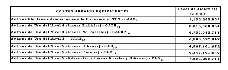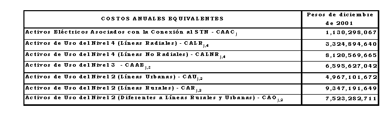 a) Costo anual para remunerar los activos de conexión al STN y de los Niveles de Tensión 4, 3 y 2, sin aplicar los criterios de eficiencia de que trata el Anexo No 8 de la Resolución CREG 082 de 2002: