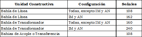 Al observar los valores contenidos en la tabla 10 del numeral 3.1.3 del anexo general de la Resolución CREG 011 de 2009 es posible evidenciar que existe una diferencia entre el número de señales reconocidas para un mismo tipo de unidad constructiva, como es el caso de las bahías de línea y las bahías de transformador y que esta diferencia radica en la configuración de la subestación.