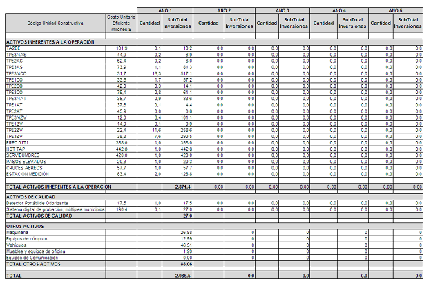 2.1. Inversión Existente. Como inversión existente no se reconoce monto alguno, por tratarse de un mercado nuevo, de conformidad con la información presentada por la Empresa.