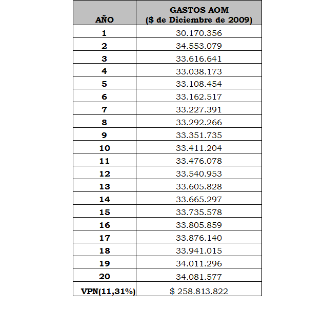 | Valor Presente de los gastos de AOM, con nivel de eficiencia. | $258.813.822