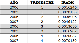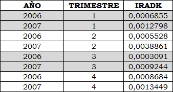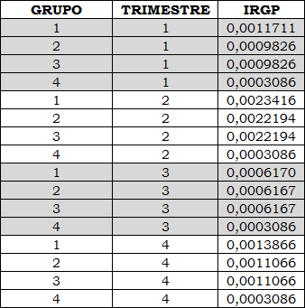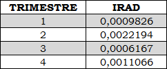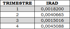Tabla 1. IRAD por trimestre para el nivel de tensión 1.