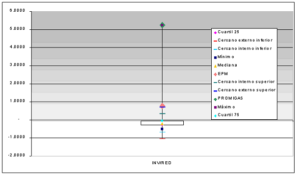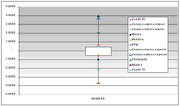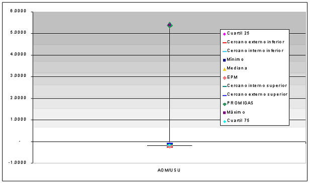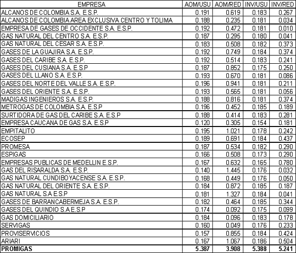 3. Finalmente y cumpliendo con el objetivo de realizar una comparación con empresas comparables que permitan introducir un criterio de eficiencia en los gastos de AOM requeridos por las empresas, la CREG realizó una análisis de las empresas con las cuales PROMIGAS presentaba similitudes, con los siguientes resultados: