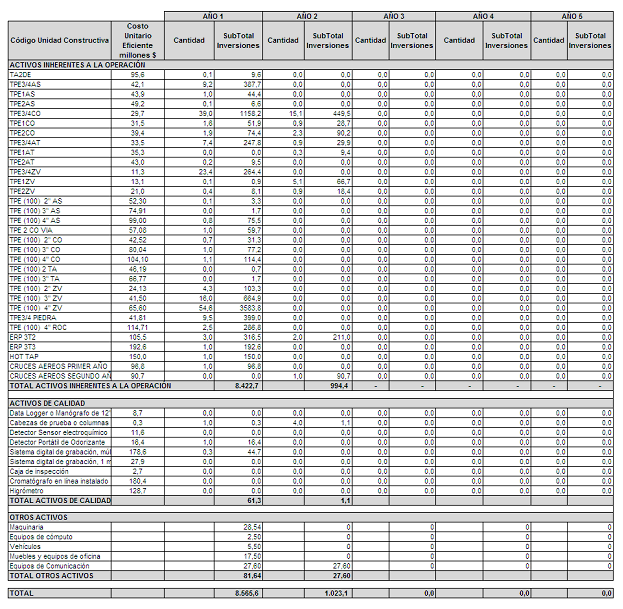 La Empresa, mediante la comunicación en cita reportó a la CREG las proyecciones de demanda, las proyecciones de gastos de AOM de distribución y el programa de nuevas inversiones, clasificadas según el listado de unidades constructivas establecido en el Anexo No. 1 de la Resolución CREG 011 de 2003.