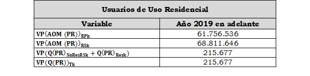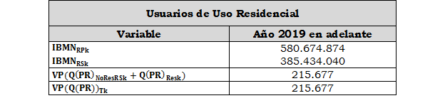 Aplicando la metodología contenida en la Resolución CREG 202 de 2013 y aquellas que la modifiquen, adicionen y/o sustituyan, se calcularon las siguientes variables principales para la componente que remunera la inversión base aplicable a usuarios de uso residencial y a usuarios diferentes a los de uso residencial: