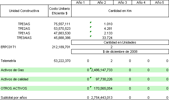 La solicitud tarifaria presentada por Empresas Públicas de Medellín ESP. incluye las proyecciones de demanda, las proyecciones de gastos de AOM de distribución y el Programa de Nuevas Inversiones, clasificadas según el listado de unidades constructivas establecido en el Anexo No. 1 de la Resolución CREG 011 de 2003.