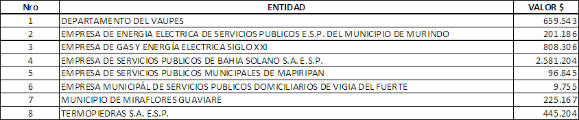 ARTÍCULO 1o.- Las siguientes entidades del sector de energía eléctrica sujetas a regulación, cancelarán el monto de la contribución especial, por el año de 2006, así: