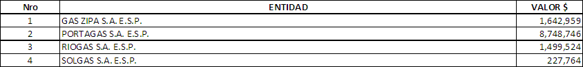 ARTÍCULO 2o.- Las siguientes entidades del sector de gas combustible sujetas a regulación, cancelarán el monto de la contribución especial, por el año de 2006, así: