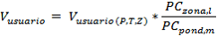 Vusuario(P,T,Z) = Volumen corregido por compresibilidad, presión y temperatura estándar.