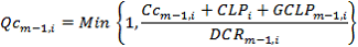 : | Es el menor valor entre 1 y el resultante de la relación energía comprada por el comercializador minorista i mediante contratos bilaterales con destino al mercado regulado y la demanda comercial del mercado regulado del comercializador minorista i, en el mes m-1. |