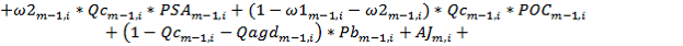 : | Ponderador de los precios de los contratos de largo plazo resultantes de la subasta del Ministerio de Minas y Energía del comercializador i, en el mes m-1. |