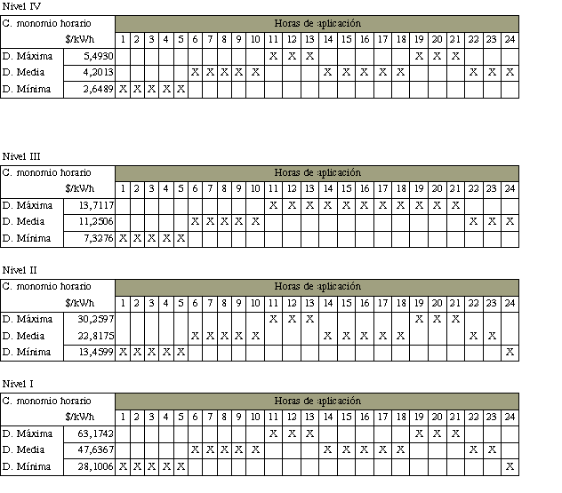 Artículo 2°. Cargos monomios horarios. Los cargos monomios horarios por uso del Sistema de Transmisión Regional y/o Distribución Local operado por la Empresa de Energía del Pacífico S.A. E.S.P., serán los siguientes, a pesos de diciembre de 1996: