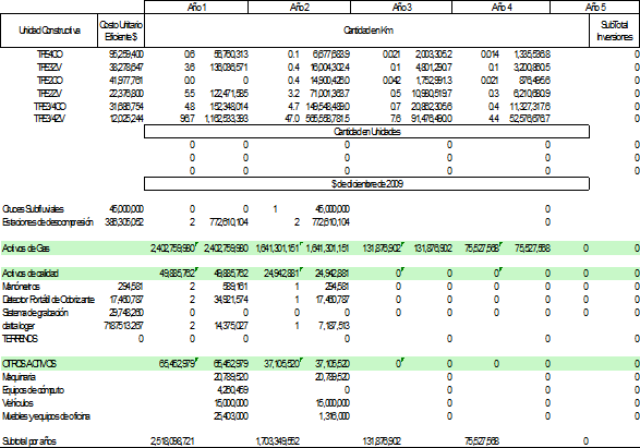 La solicitud tarifaria presentada por la empresa incluye las proyecciones de demanda, las proyecciones de gastos de AOM de distribución y el Programa de Nuevas Inversiones, clasificadas según el listado de unidades constructivas establecido en el Anexo No. 1 de la Resolución CREG 011 de 2003.