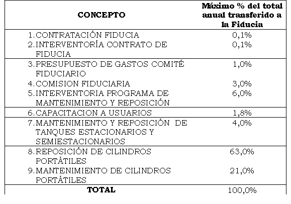 Que de acuerdo con lo establecido en la Resolución CREG-019 de 2002 de abril de 2002, le corresponde al fideicomitente adjudicar los contratos establecidos para hacer operativo el esquema de mantenimiento y reposición de cilindros portátiles y tanques estacionarios y semiestacionarios, tales como el de interventoría, secretaría técnica, asesoría legal del comité fiduciario, entre otros.