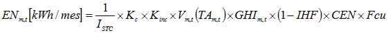 | Energía generada en el mes m del año t, en kWh/mes |