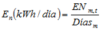 3. Se calcula la Energía En en kWh/día de acuerdo con la siguiente ecuación: