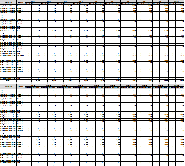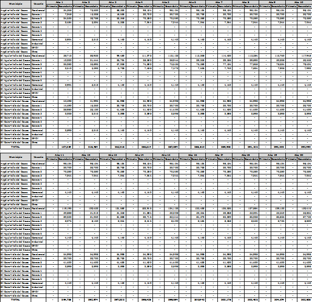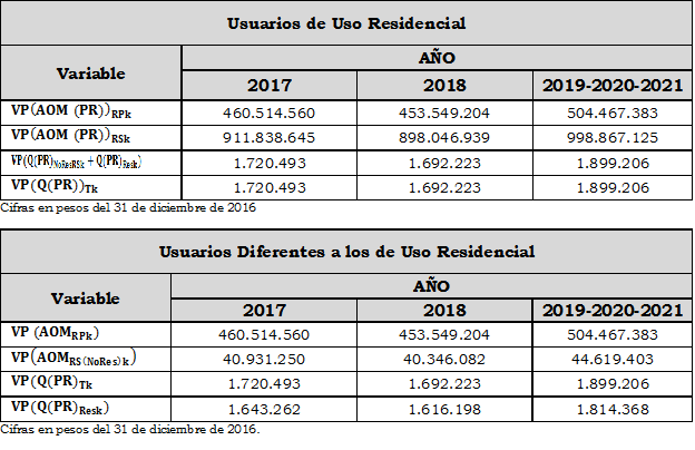 Aplicando la metodología contenida en la Resolución CREG 202 de 2013 y sus modificaciones y adiciones, se calcularon conforme a las formulas establecidas en los numerales 9.1.1.3. y 9.2.1.3. del artículo 9 para la componente que remunera los gastos de AOM, aplicable a usuarios de uso residencial y a usuarios diferentes a los de uso residencial, las siguientes variables principales: