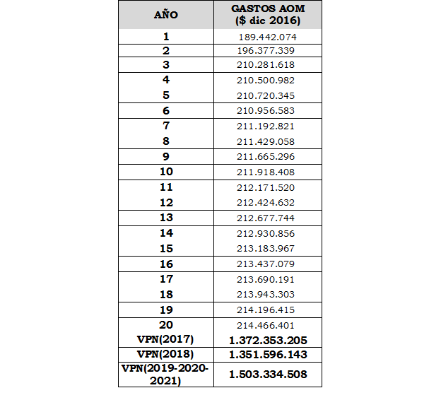 En los casos en que el porcentaje eficiente de gastos de AOM corresponda con  , se multiplica el gasto de AOM proyectado para cada uno de los años, reportado por la empresa y ajustado conforme al menor de los crecimientos entre el de AOM y el de la demanda, por el siguiente factor: