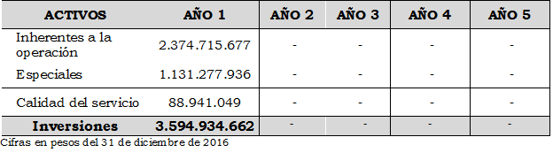 En la mencionada comunicación se allegaron los datos de demanda, gastos de administración operación y mantenimiento AOM y las inversiones clasificadas según el listado de unidades constructivas establecido en el Anexo No. 8 de la Resolución CREG 202 de 2013.