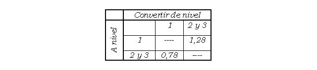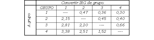 Tabla 1. Factores de conversión entre grupos de calidad l.