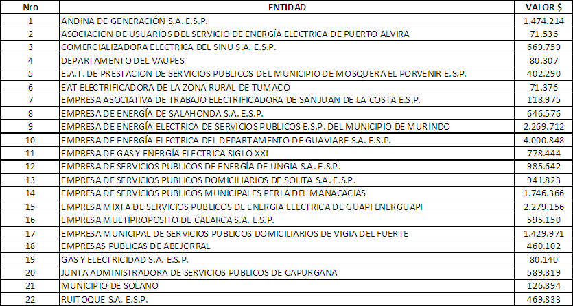 ARTÍCULO 1º.- Las siguientes entidades del sector de energía eléctrica sujetas a regulación, cancelarán el monto de la contribución especial, por el año de 2004, así: