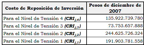 “Artículo 5. Costos de reposición de la inversión. Los costos de reposición de la inversión del OR Compañía Energética de Occidente S.A.S. E.S.P., CEO para cada nivel de tensión, calculados en la forma establecida en la Resolución CREG 097 de 2008, son los siguientes: