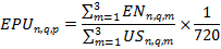 USn,q,m: Número de usuarios facturados, identificados a partir del NIU, conectados al nivel de tensión n, del grupo de calidad q, durante el mes m. Este valor debe corresponder con el número de facturas utilizadas para el cálculo de la componente ENn,q,m.
